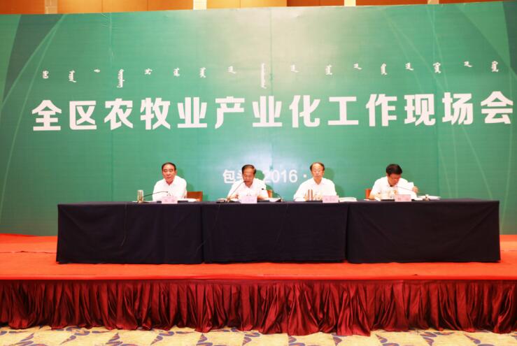 農(nóng)牧業(yè)廳廳長(zhǎng)郭健在會(huì)上通報(bào)了我區(qū)農(nóng)牧業(yè)產(chǎn)業(yè)化發(fā)展情況。近年來(lái),在自治區(qū)黨委、政府的正確領(lǐng)導(dǎo)下,農(nóng)牧業(yè)產(chǎn)業(yè)化工作以“建設(shè)綠色農(nóng)畜產(chǎn)品生產(chǎn)加工輸出基地”為抓手,積極推進(jìn)一二三產(chǎn)融合發(fā)展,走出了一條行之有效的發(fā)展之路,農(nóng)畜產(chǎn)品加工業(yè)已成為我區(qū)繼能源、冶金之后第三大工業(yè)支柱產(chǎn)業(yè),為增加農(nóng)牧民收入,促進(jìn)全區(qū)經(jīng)濟(jì)社會(huì)平穩(wěn)較快發(fā)展作出了重要貢獻(xiàn)。郭廳長(zhǎng)指出,面對(duì)新形勢(shì)新任務(wù),全區(qū)農(nóng)牧業(yè)產(chǎn)業(yè)化工作要深入貫徹落實(shí)“創(chuàng)新、協(xié)調(diào)、綠色、開(kāi)放、共享”五大發(fā)展理念,堅(jiān)持以供給側(cè)結(jié)構(gòu)性改革為動(dòng)力,著力培育領(lǐng)軍企業(yè),創(chuàng)建知名品牌,延伸產(chǎn)業(yè)鏈條,統(tǒng)籌推進(jìn)農(nóng)畜產(chǎn)品初加工、精深加工和綜合利用,加強(qiáng)農(nóng)畜產(chǎn)品輸出平臺(tái)建設(shè),完善龍頭企業(yè)與農(nóng)牧民利益聯(lián)結(jié)機(jī)制,推進(jìn)一二三產(chǎn)業(yè)融合發(fā)展。郭健廳長(zhǎng)強(qiáng)調(diào)重點(diǎn)要在八個(gè)方面“實(shí)現(xiàn)突破”:一是在政策扶持上求突破,二是在產(chǎn)業(yè)發(fā)展上求突破,三是在培育龍頭企業(yè)上求突破,四是在培育品牌上求突破,五是在完善利益聯(lián)結(jié)機(jī)制上求突破,六是在推進(jìn)“輸出”上求突破,七是在推進(jìn)三產(chǎn)融合試點(diǎn)上求突破,八是在產(chǎn)業(yè)扶貧上求突破。依托內(nèi)蒙古天藍(lán)地綠、山清水凈、空氣清新、環(huán)境優(yōu)良的生態(tài)優(yōu)勢(shì),努力開(kāi)創(chuàng)農(nóng)牧業(yè)產(chǎn)業(yè)化經(jīng)營(yíng)發(fā)展新局面,為全區(qū)經(jīng)濟(jì)社會(huì)發(fā)展作出新的更大貢獻(xiàn)。