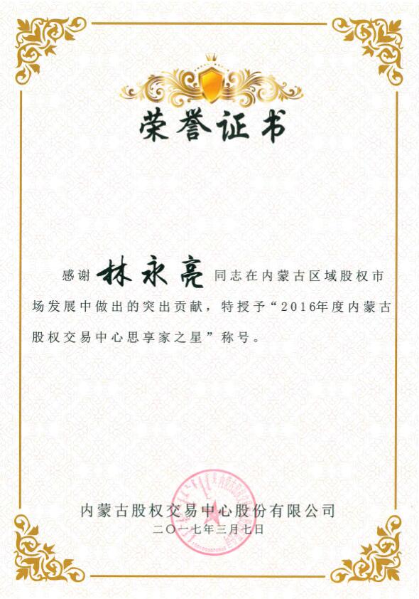 在37日上午召開(kāi)的首屆內(nèi)蒙古股權(quán)交易中心會(huì)員和分支機(jī)構(gòu)大會(huì)上,內(nèi)蒙古農(nóng)牧業(yè)產(chǎn)業(yè)化龍頭企業(yè)協(xié)會(huì)因積極支持并參與內(nèi)蒙古區(qū)域股權(quán)市場(chǎng)工作,榮獲內(nèi)蒙古股權(quán)交易中心頒發(fā)的“突出貢獻(xiàn)獎(jiǎng)”,協(xié)會(huì)執(zhí)行會(huì)長(zhǎng)兼秘書(shū)長(zhǎng)林永亮及常務(wù)秘書(shū)長(zhǎng)劉俊青均榮獲“內(nèi)蒙古股權(quán)交易中心思享家之星”稱號(hào)。這是對(duì)協(xié)會(huì)在2016年對(duì)內(nèi)蒙古區(qū)域股權(quán)市場(chǎng)發(fā)展中突出貢獻(xiàn)的肯定,更是承載著一份責(zé)任和希望,新的一年,內(nèi)蒙古農(nóng)牧業(yè)產(chǎn)業(yè)化龍頭企業(yè)協(xié)會(huì)將繼續(xù)秉承“溝通 服務(wù) 自律 發(fā)展”的服務(wù)宗旨,乘勢(shì)而上,加壓奮進(jìn),開(kāi)拓創(chuàng)新,找準(zhǔn)協(xié)會(huì)工作與股權(quán)經(jīng)濟(jì)建設(shè)的結(jié)合點(diǎn),為推動(dòng)農(nóng)牧業(yè)產(chǎn)業(yè)化發(fā)展做出新的貢獻(xiàn)。