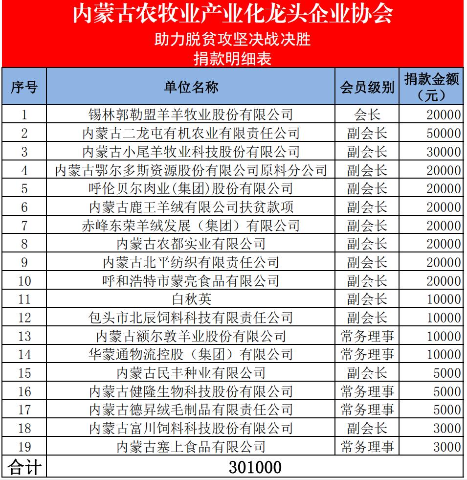 2020年,是全面建成小康社會目標(biāo)實(shí)現(xiàn)之年,是全面打贏脫貧攻堅戰(zhàn)收官之年,更是產(chǎn)業(yè)扶貧工作至關(guān)重要的一年,抓好此項工作責(zé)任重大、意義重大。受新冠肺炎疫情的影響,產(chǎn)業(yè)扶貧工作也必將會遇到新的挑戰(zhàn),時間緊、任務(wù)重,內(nèi)蒙古農(nóng)牧業(yè)產(chǎn)業(yè)化龍頭企業(yè)協(xié)會在內(nèi)蒙古自治區(qū)農(nóng)牧廳的指導(dǎo)下,克服困難、精心策劃、認(rèn)真研究、取長補(bǔ)短,持續(xù)抓好今年的幫扶工作,確保成效。