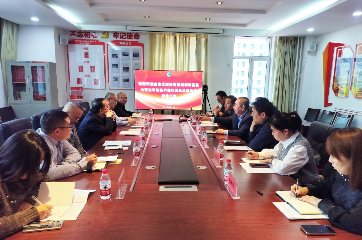 2024年12月18日下午,自治區(qū)政協(xié)委員、港澳臺(tái)僑聯(lián)絡(luò)和外事委員會(huì)主任張波,內(nèi)蒙古工業(yè)大學(xué)僑聯(lián)副主席新巴雅爾,內(nèi)蒙古航空職業(yè)技術(shù)學(xué)校校長(zhǎng)、內(nèi)蒙古航空運(yùn)動(dòng)協(xié)會(huì)會(huì)長(zhǎng)趙自強(qiáng),自治區(qū)政協(xié)港澳臺(tái)僑聯(lián)絡(luò)和外事委員會(huì)辦公室主任安勝利一行6人來協(xié)會(huì)調(diào)研指導(dǎo)工作,協(xié)會(huì)副會(huì)長(zhǎng)單位內(nèi)蒙古凌志馬鈴薯科技股份有限公司總經(jīng)理閆洪志、內(nèi)蒙古民豐種業(yè)有限公司劉榮書,常務(wù)理事單位內(nèi)蒙古額爾敦羊業(yè)股分有限公司董事長(zhǎng)助理畢欣及協(xié)會(huì)秘書處全體工作人員參加會(huì)議,會(huì)議由協(xié)會(huì)秘書長(zhǎng)呼群主持。