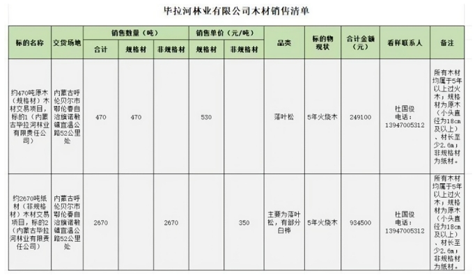標的木材為火燒跡地清理材,分為兩個標的,其中標的1是約 470 噸的原木(規(guī)格材),標的2是約2670噸的紙材(非規(guī)格材)(所有出材以實際出材量為準),項目明細如下: