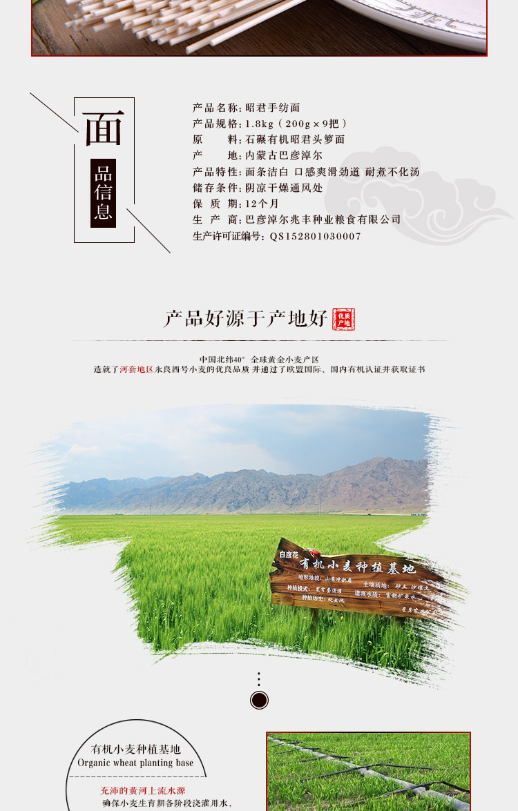 產(chǎn)品名稱(chēng):雞鹿塞 昭君手紡面 精品禮盒 1.8kg 手工細(xì)面 禮盒