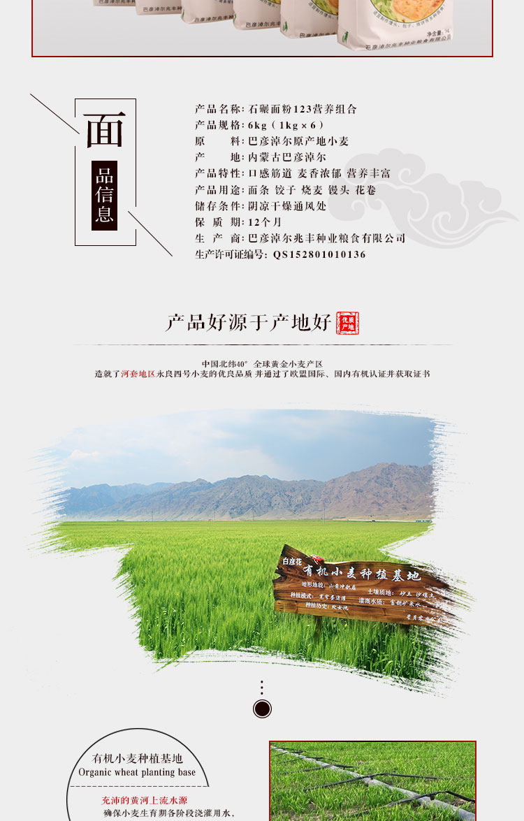 產(chǎn)品名稱:雞鹿塞 石碾面粉123營養(yǎng)組合 禮盒 6kg 河套高筋面粉 禮盒