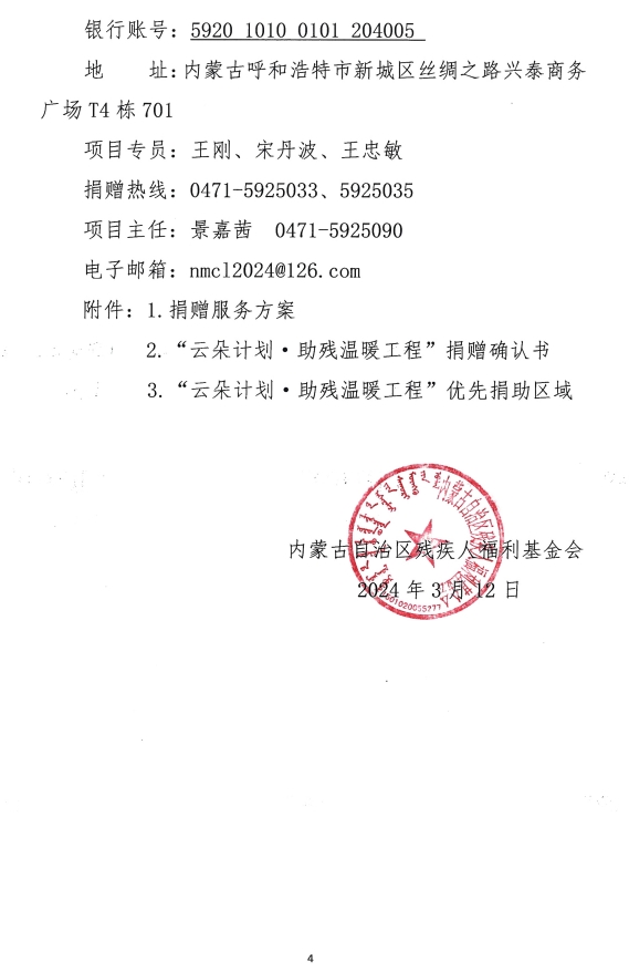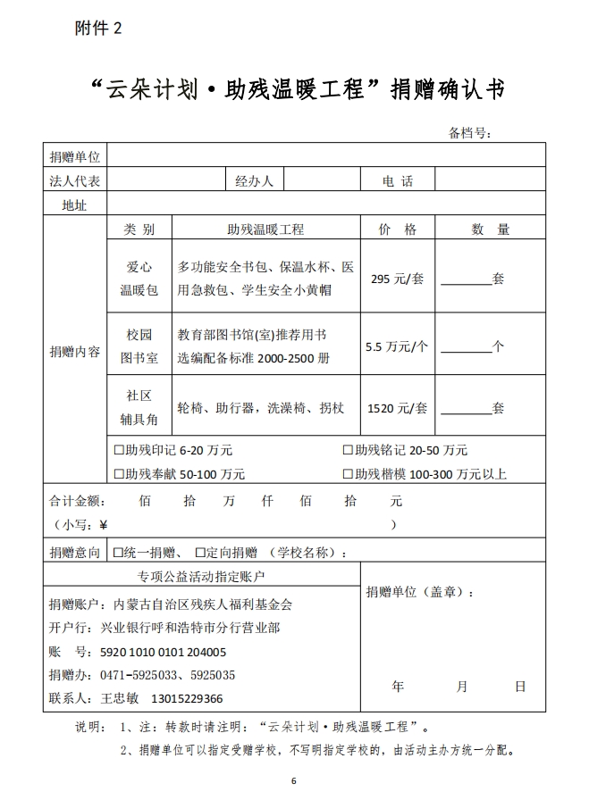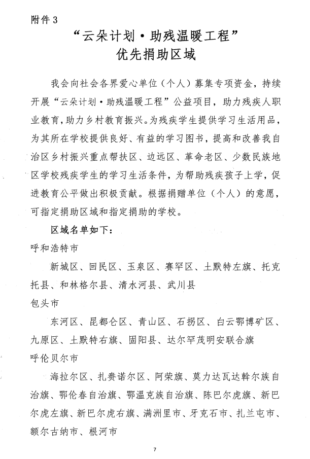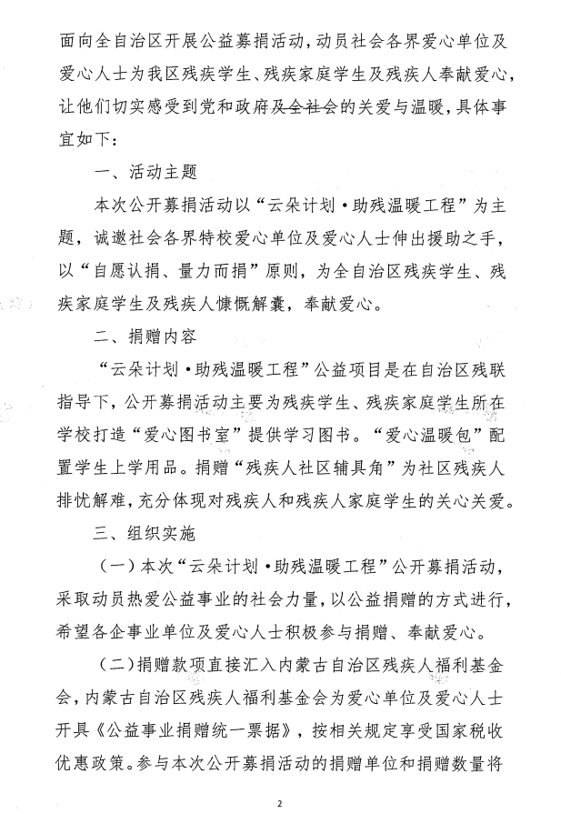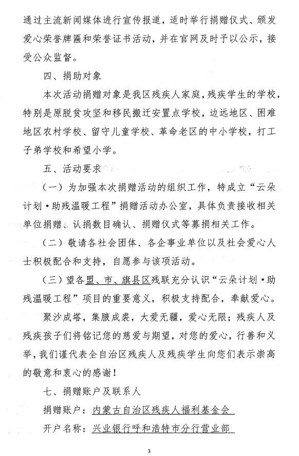 關于開展“云朵計劃·助殘溫暖工程’公益項目專項募捐的通知