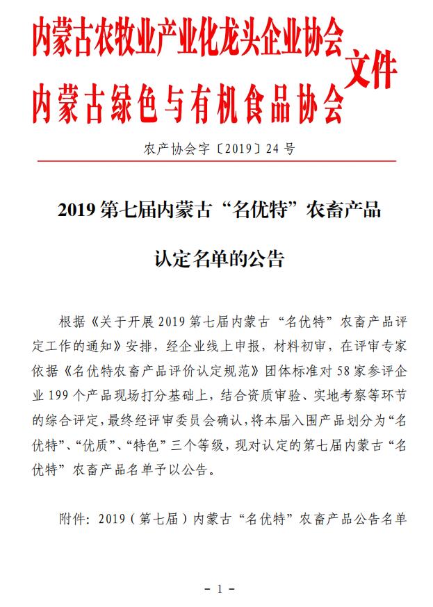 2019第七屆內(nèi)蒙古“名優(yōu)特”農(nóng)畜產(chǎn)品 認(rèn)定名單的公告