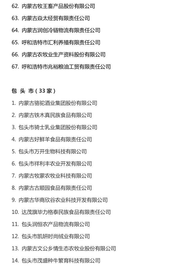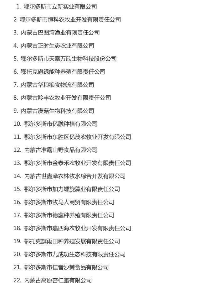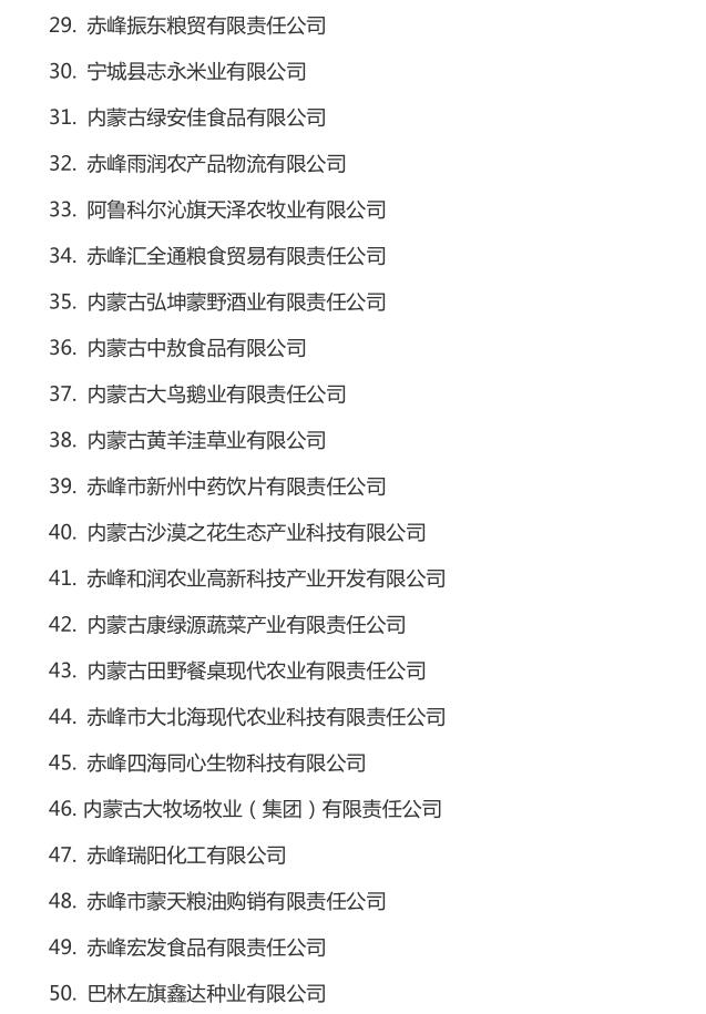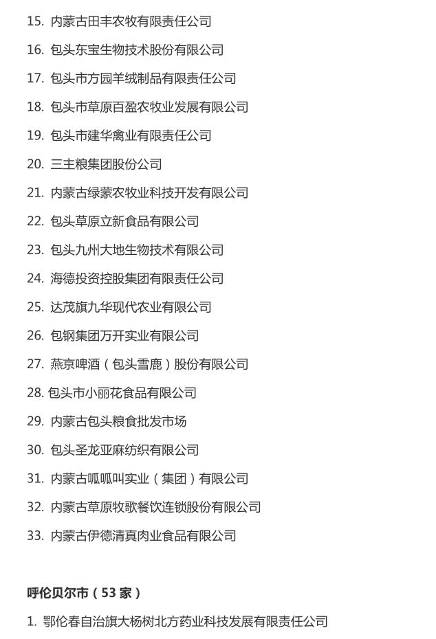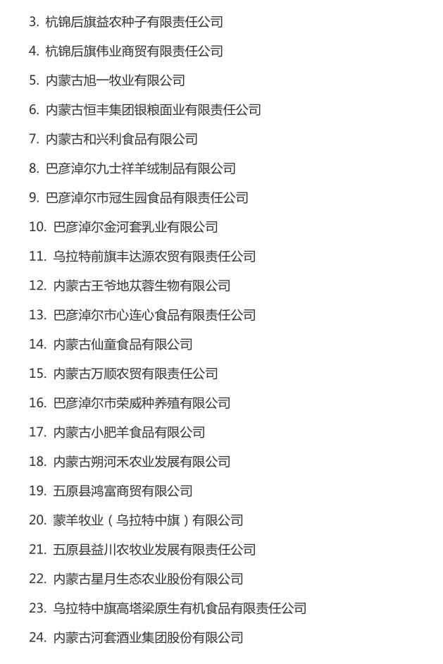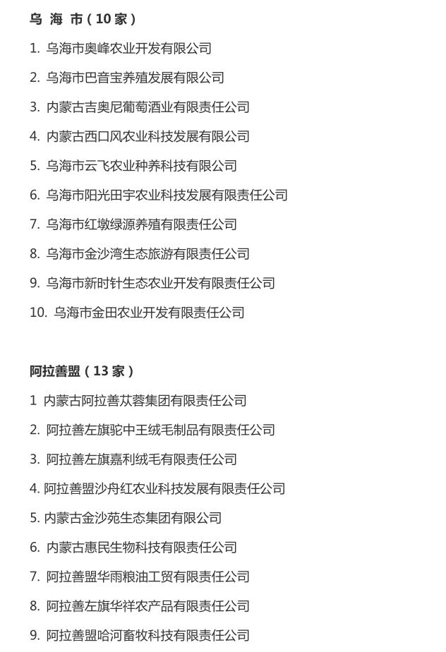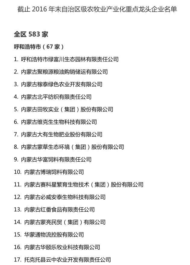 企業(yè)名稱:截止2016年末自治區(qū)級農牧業(yè)產業(yè)化 重點龍頭企業(yè)名單​