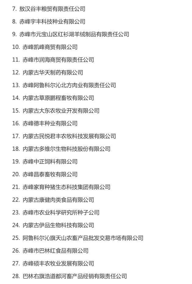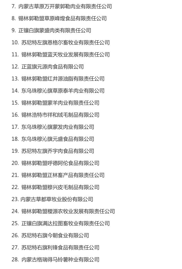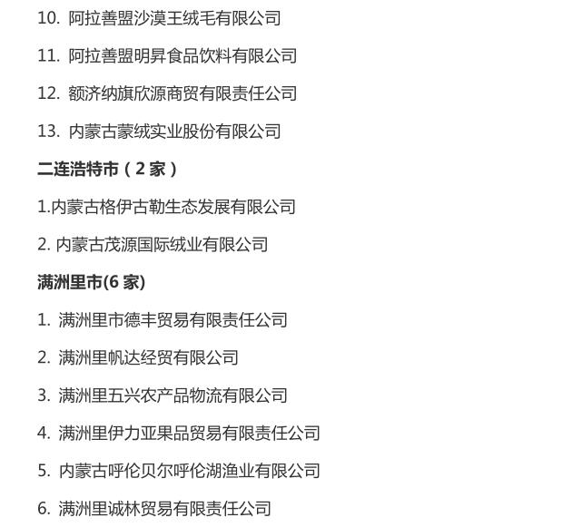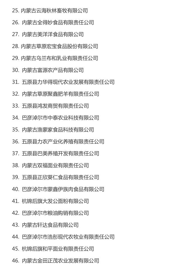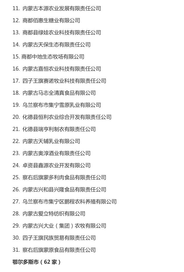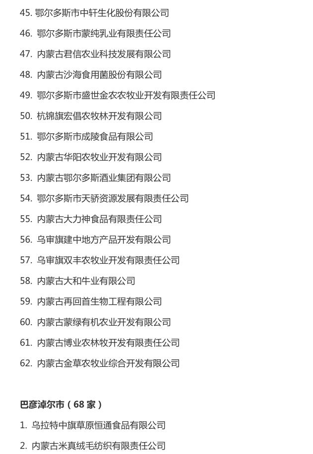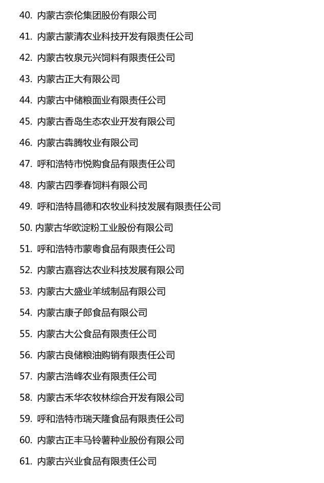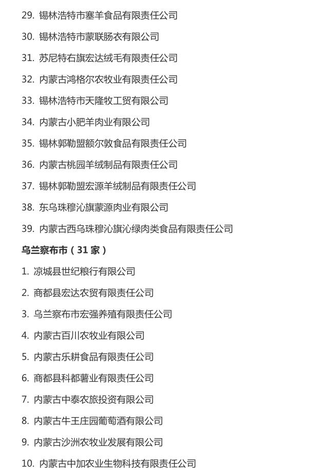 企業(yè)名稱:截止2016年末自治區(qū)級農牧業(yè)產業(yè)化 重點龍頭企業(yè)名單​